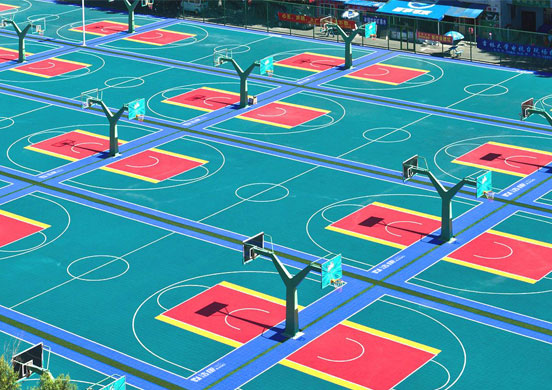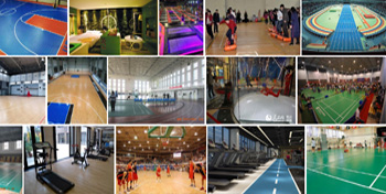 羽毛球塑胶运动地板、乒乓球塑胶运动地板、篮球塑胶运动地板、网球塑胶运动地板、排球塑胶运动地板以及舞蹈室、健身房、幼儿园等室内运动、休闲场所均可使用的塑胶运动地板。